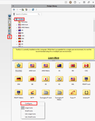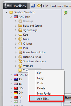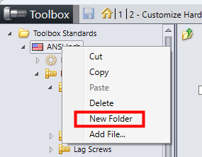 - If you would like to create a new Standard (e.g., ANSI Inch), right-click on the Toolbox Standards folder and select New Folder.
