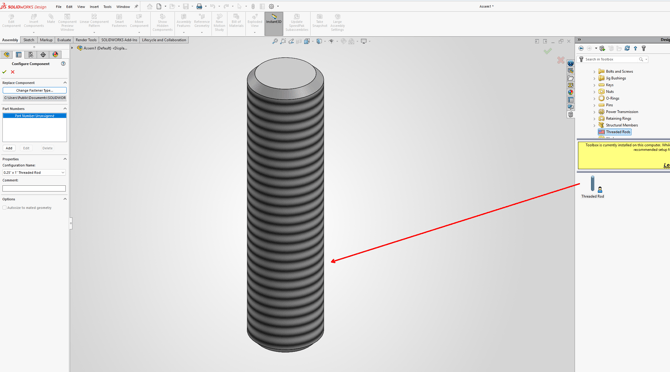 SOLIDWORKS Toolbox includes a large library of standard hardware, but many teams use custom fasteners, fittings, or organization-specific components. Toolbox allows you to add these custom parts so they behave just like standard Toolbox items, complete with automatic sizing, configuration control, and smart mating behavior.