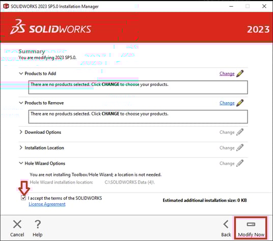 In the SOLIDWORKS Installation Manager, choose Modify your installation and click Next.