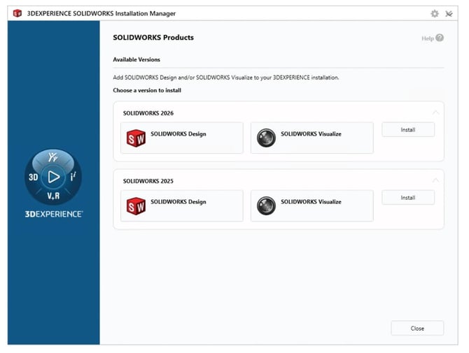 Using the 3DEXPERIENCE SOLIDWORKS Installation Manager, you can select which version to install from the list of Available Versions.